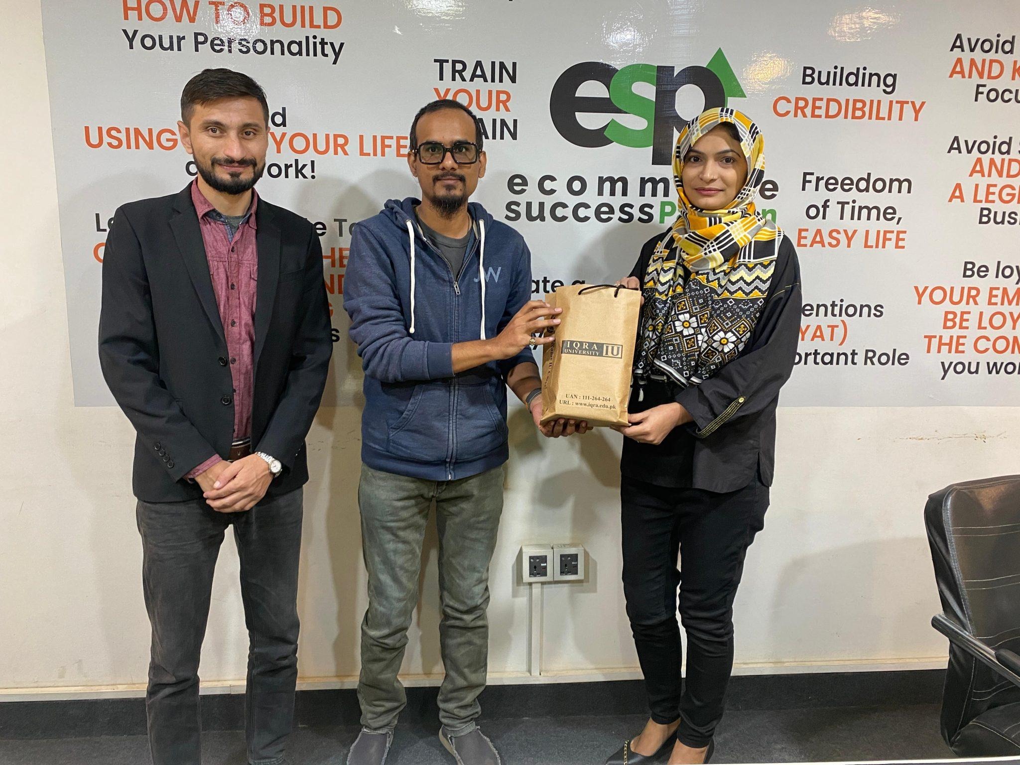 On December 16, 2024, Ms. Zareesh, the Manager of IU ORIC, along with Dr. Asif Shamim, visited E-commerce Success Pakistan, a prominent institution that specializes in Amazon Automation, Etsy Automation, eBay, and other related e-commerce programs. During their visit, the team was introduced to the institution’s comprehensive approach to e-commerce automation and digital entrepreneurship.